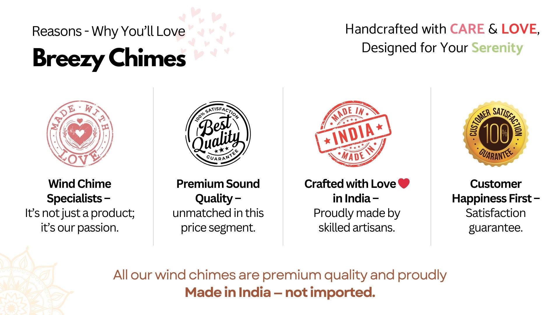 The quality of the chimes finish wise and the quality of the music produced by it,is lovely. Breezy chimes took a lot of effort in packaging it as well and hence it is a great idea for gifting to loved ones.